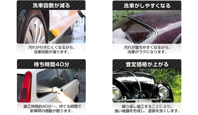 仕上がりの美しさ、施工時間、お手軽な費用、すべてにおいてご納得のいくコーティングで、