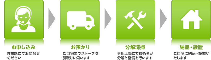 ストーブを長年使用していると、内部の汚れやススなどの影響で本来の効果を発揮できなくなってしまいます。さらに、放置をしておくと不調の原因にもなります。 冨士見総業では本格的な冬が来る前にストーブの分解掃除をしておくことをオススメしています。シーズン前に掃除・整備をしておくことで急なトラブルを避けることができます。さらに、燃焼効率も向上し、ストーブ自体も長持ちさせることができるのです。